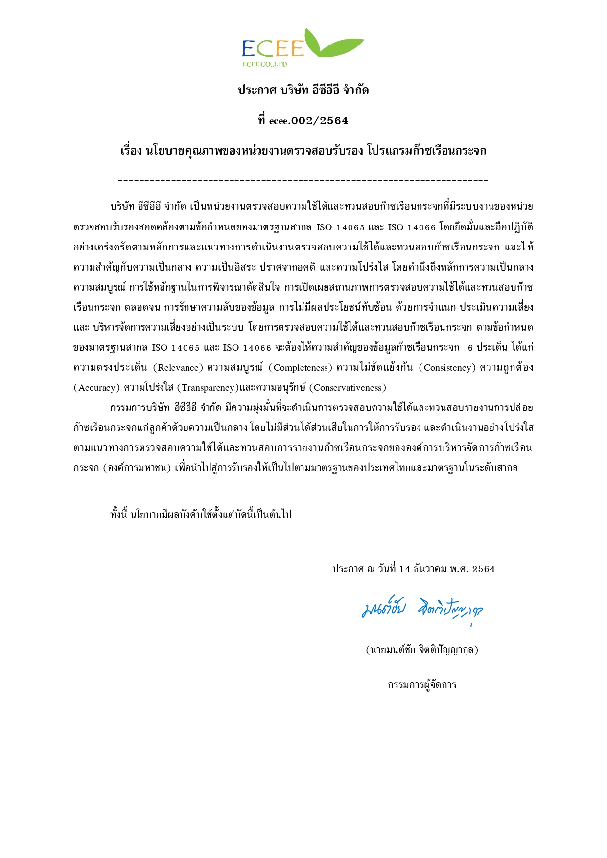 ติดต่อขอรับการตรวจสอบความใช้ได้/ทวนสอบก๊าซเรือนกระจกระดับโครงการ vvb@eceeth.com